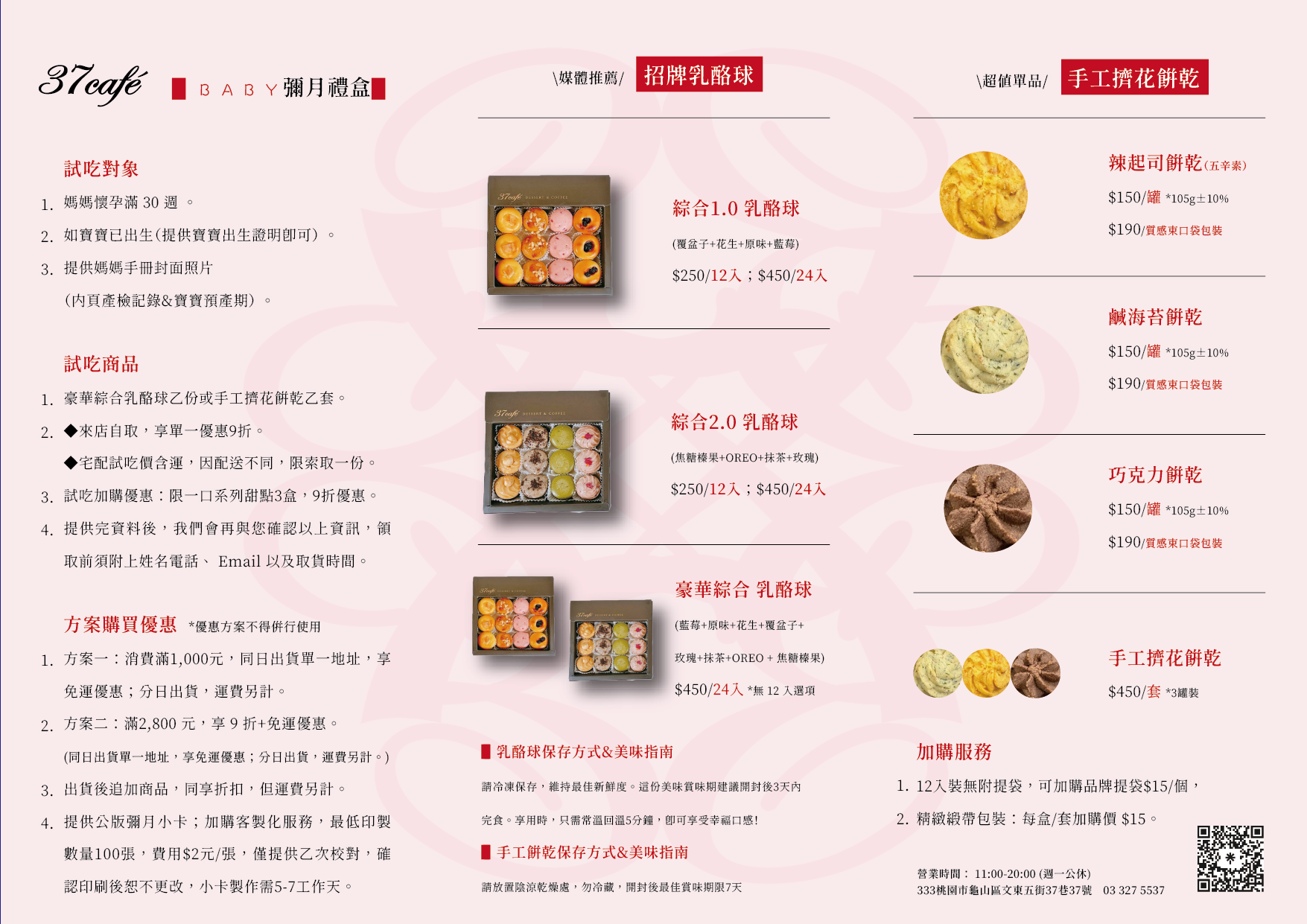 豪華綜合乳酪球乙份或手工擠花餅乾乙套。