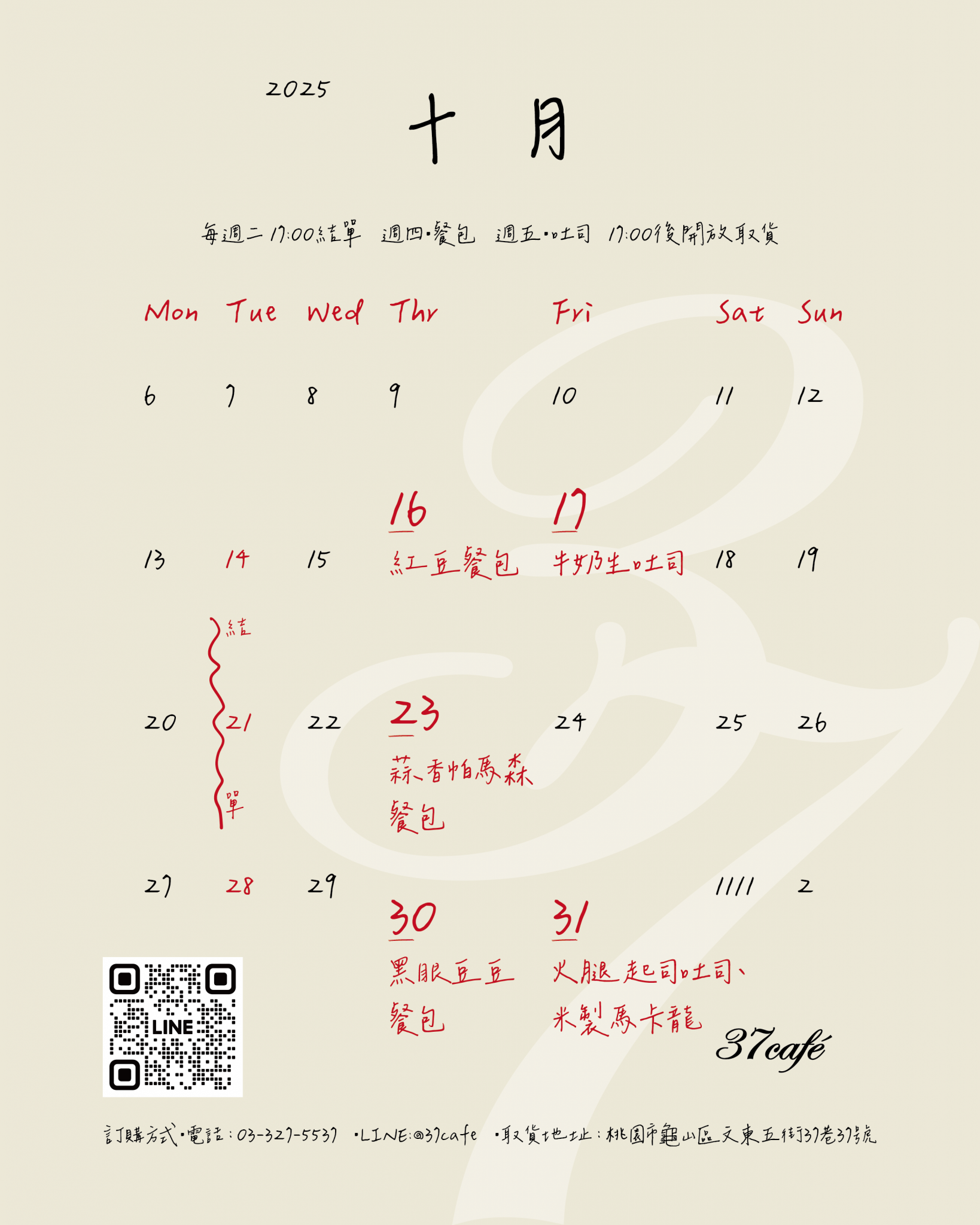🍞 【37cafe 10月限定烘焙日曆】